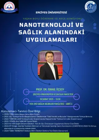 Sizleri, alanında uzman Prof. Dr. İsmail ÖÇSOY tarafından gerçekleştirilecek "Nanoteknoloji ve Sağlık Alanındaki Uygulamaları" konulu sunuma davet etmekten büyük mutluluk duyarız.