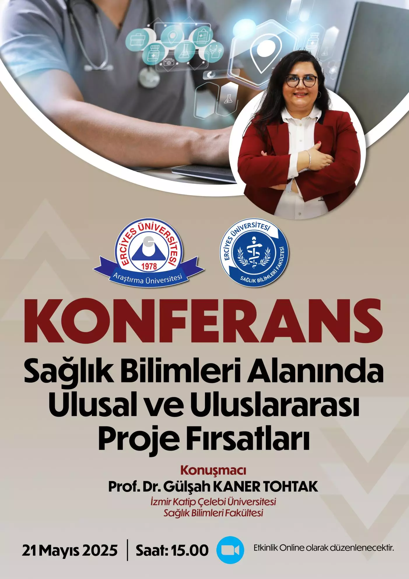 Sağlık Bilimleri Alanında Ulusal ve Uluslararası Proje Fırsatları konferansı Prof. Dr. Gülşah Taner Tohtak'ın katılımlarıyla online olarak 21 Mayıs 2025 saat 15.00'da düzenlenecektir. Konferansa tüm öğrenci ve akademik personelimiz davetlidir.